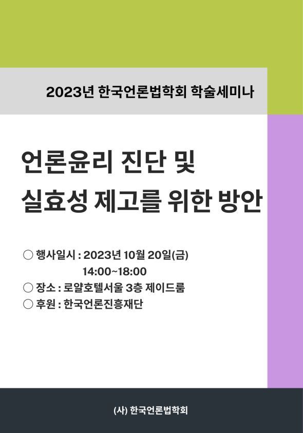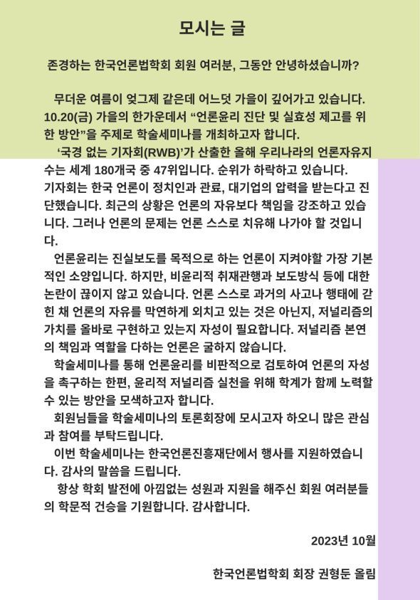 [공지] 한국언론법학회 2023 가을철 정기학술대회 개최