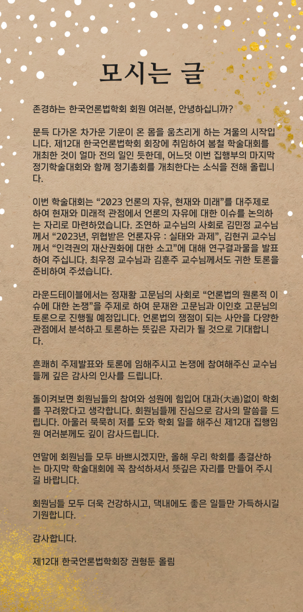 [공지] 한국언론법학회 2023 가을철 정기학술대회 개최