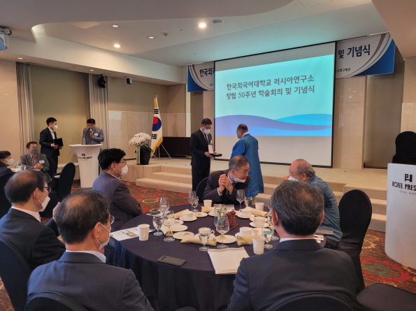 창립  50주년 기념식은 북방경제협력위원회 박종수 위원장 국립외교원 홍현익 원장 한국외대 박정운 총장의 축사로 시작되어 국내 러시아학 연구자  70여 명이 참석하여 러시아연구소의 지난  50년의 세월을 돌아보고 축하하는 시간을 보냈다 특히 연구소의 발전에 기여한 전임 러시아연구소 소장과 연구소의  HK연구 사업을 지원한 전임 총장에게 감사패를 전달했다 .