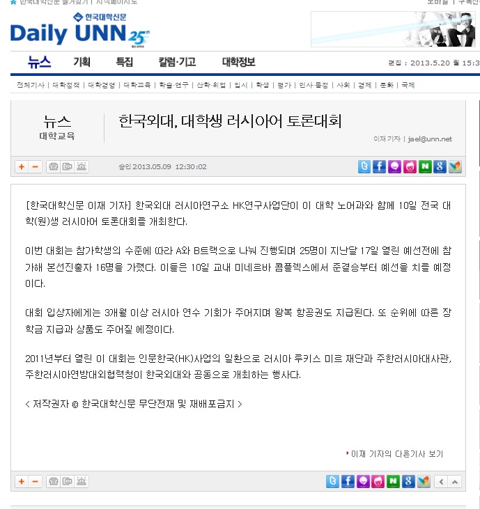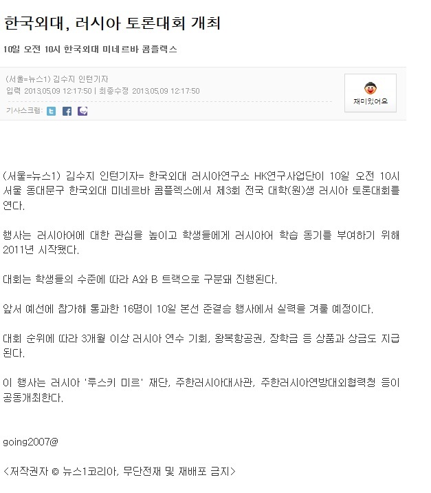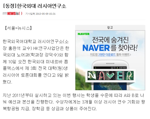 [언론보도] 제3회 전국 대학(원)생 러시아어 토론대회