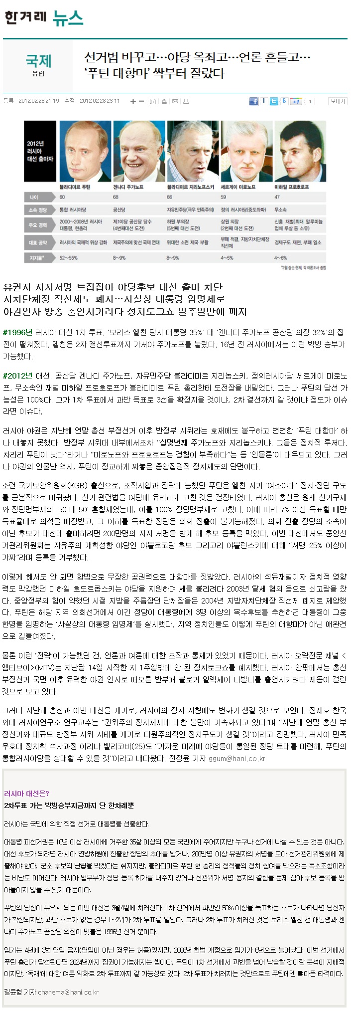 [언론보도]러시아, 국외 선거감시단 줄줄이 입국-한겨레(2012.3.1)