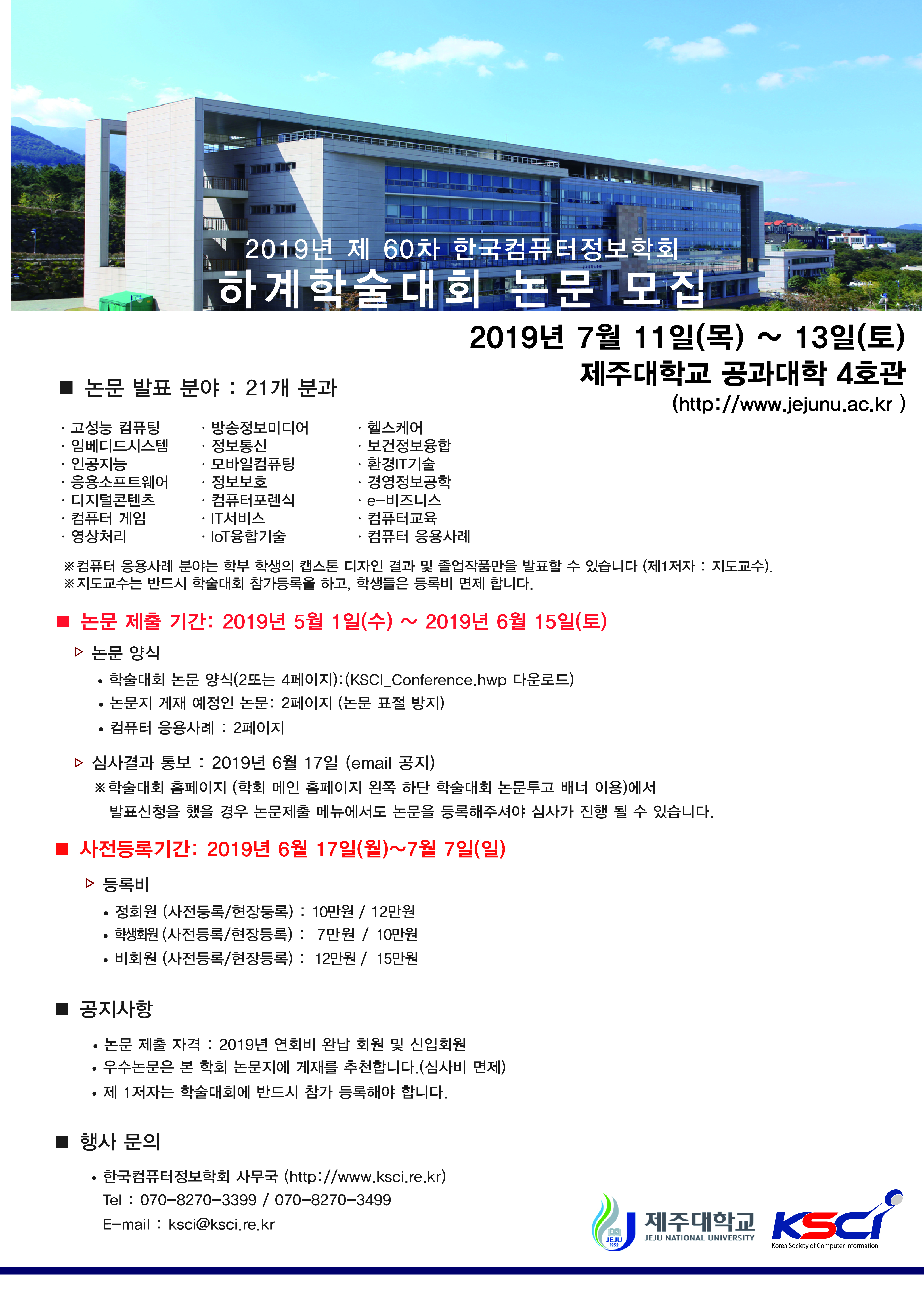 2019년 제60차 한국컴퓨터정보학회 하계학술대회 논문 모집