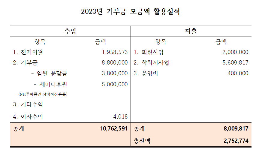 년 연간 기부모금액 및 활용실적을 공시합니다