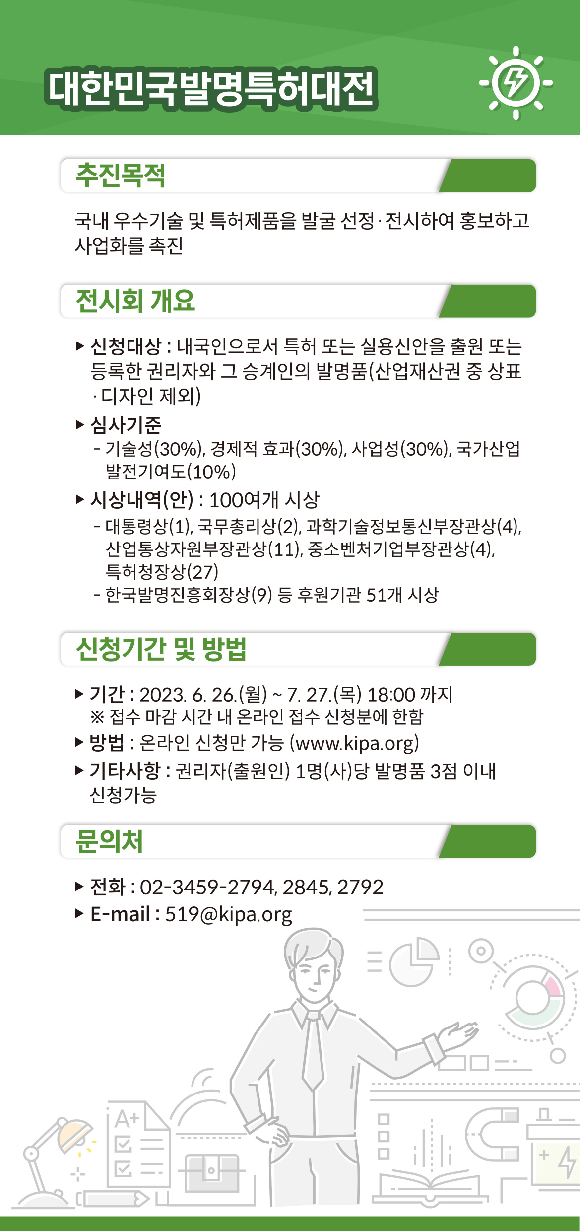 [특허청/한국발명진흥회] 2023년 대한민국발명특허대전 출품 신청 접수중(~7.27)
