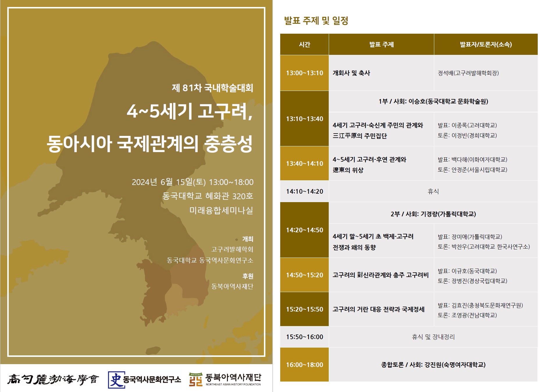 주최: 고구려발해학회, 동국대학교 동국역사문화연구소