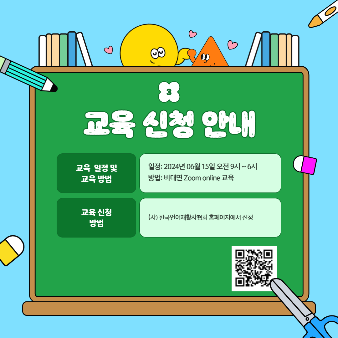 - 교육신청방법: (사)한국언어재활사협회에서 신청
