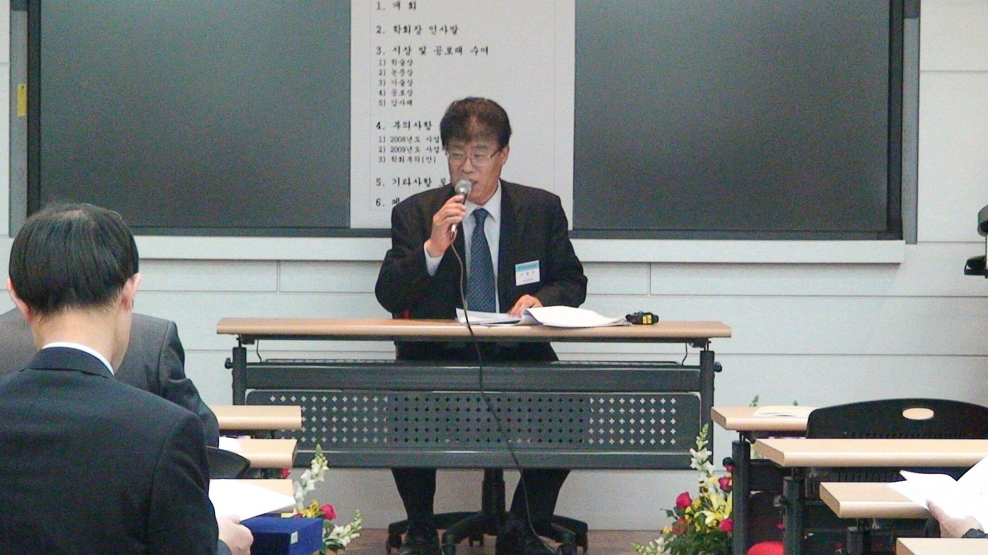 정기총회를 주관하고 계신 학회장님
