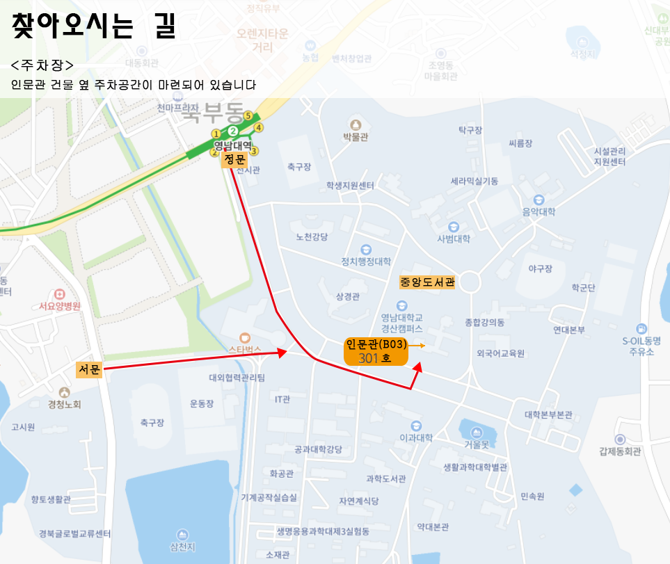 * 포스터에는 인문관(B03) 301호로 되어 있으나, 위의 안내드린 장소로 오시길 바랍니다.