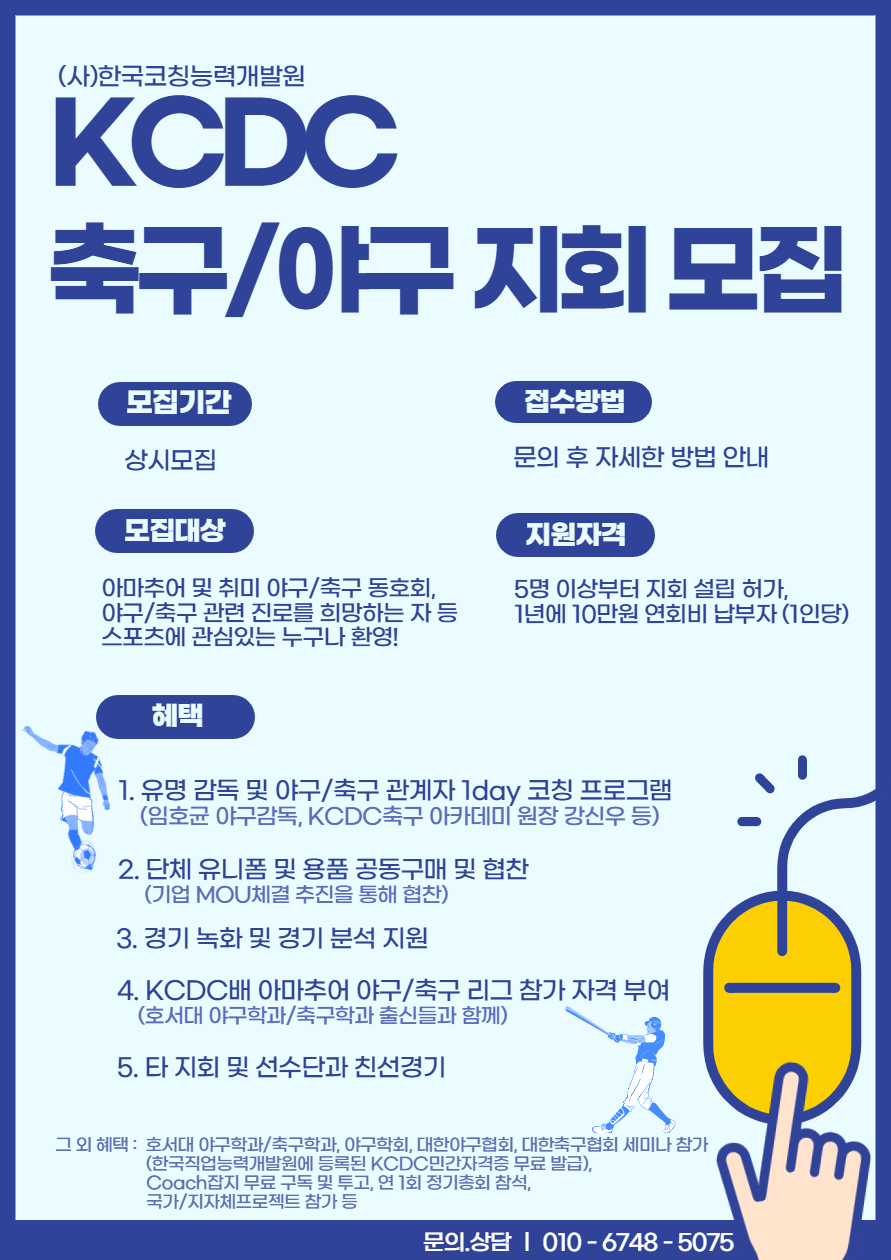 KCDC 전국 축구/야구 지회 모집