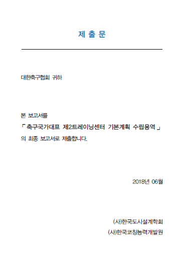 「축구국가대표 제2트레이닝센터 기본계획 수립용역」