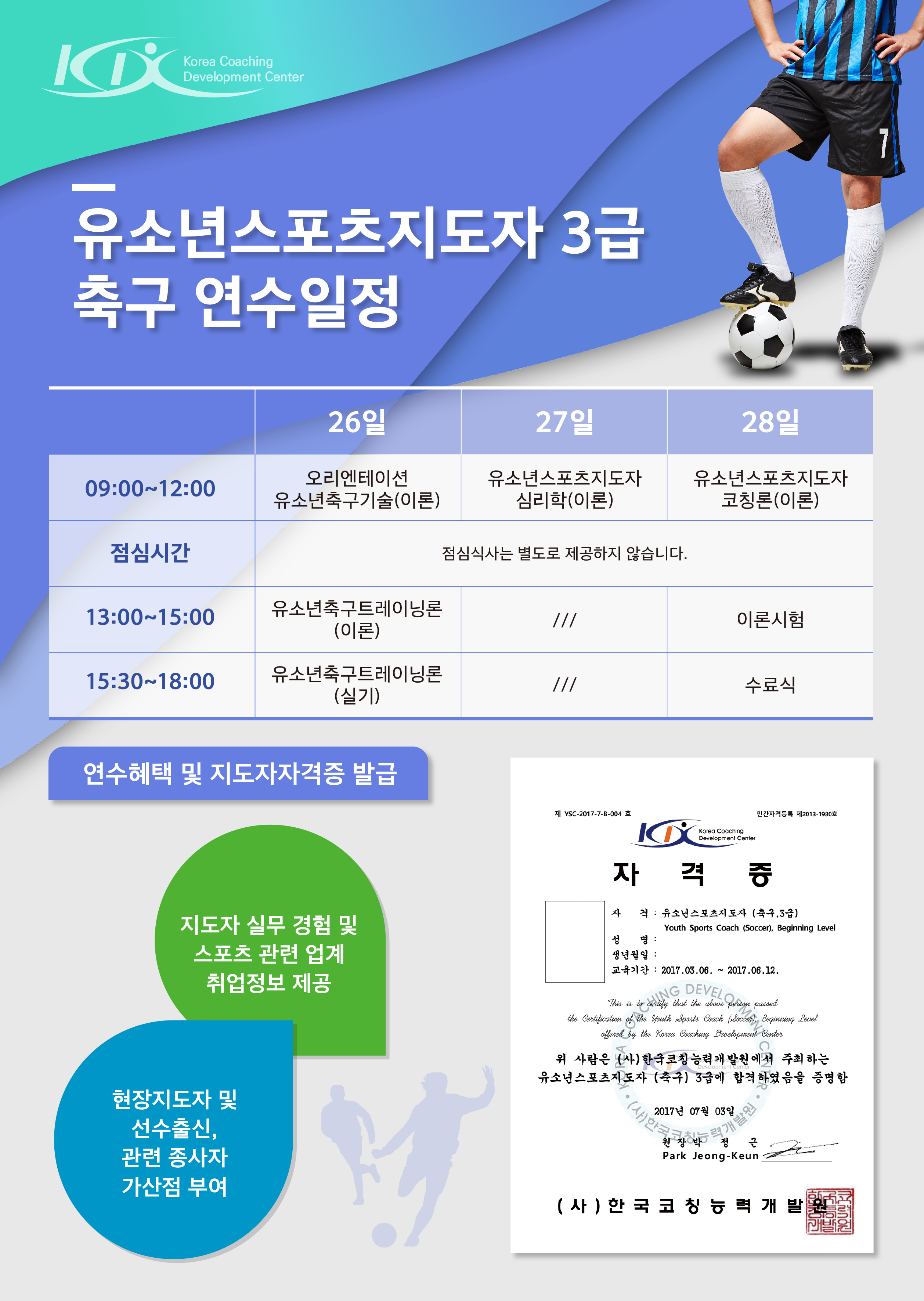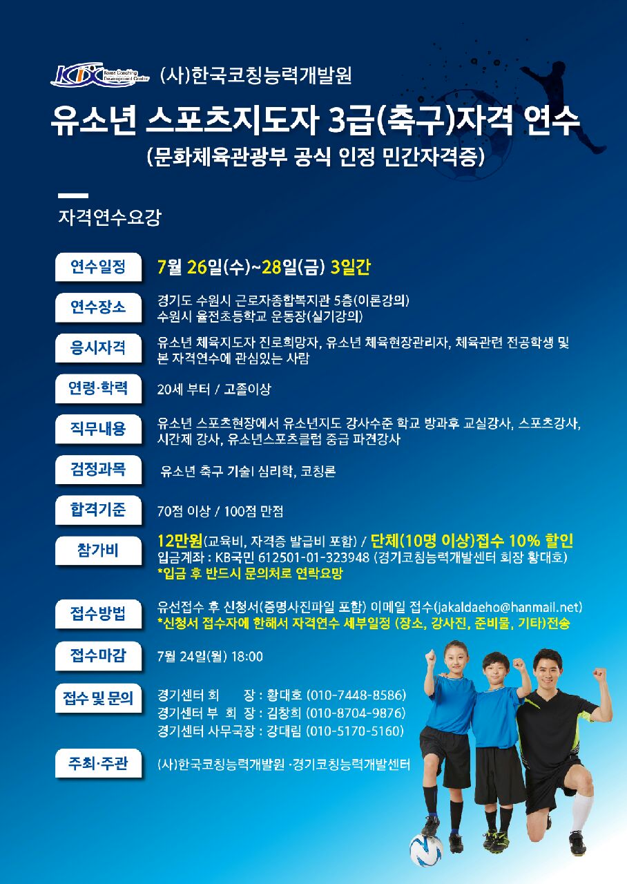 2017 유소년스포츠지도자(축구) 3급 자격연수안내