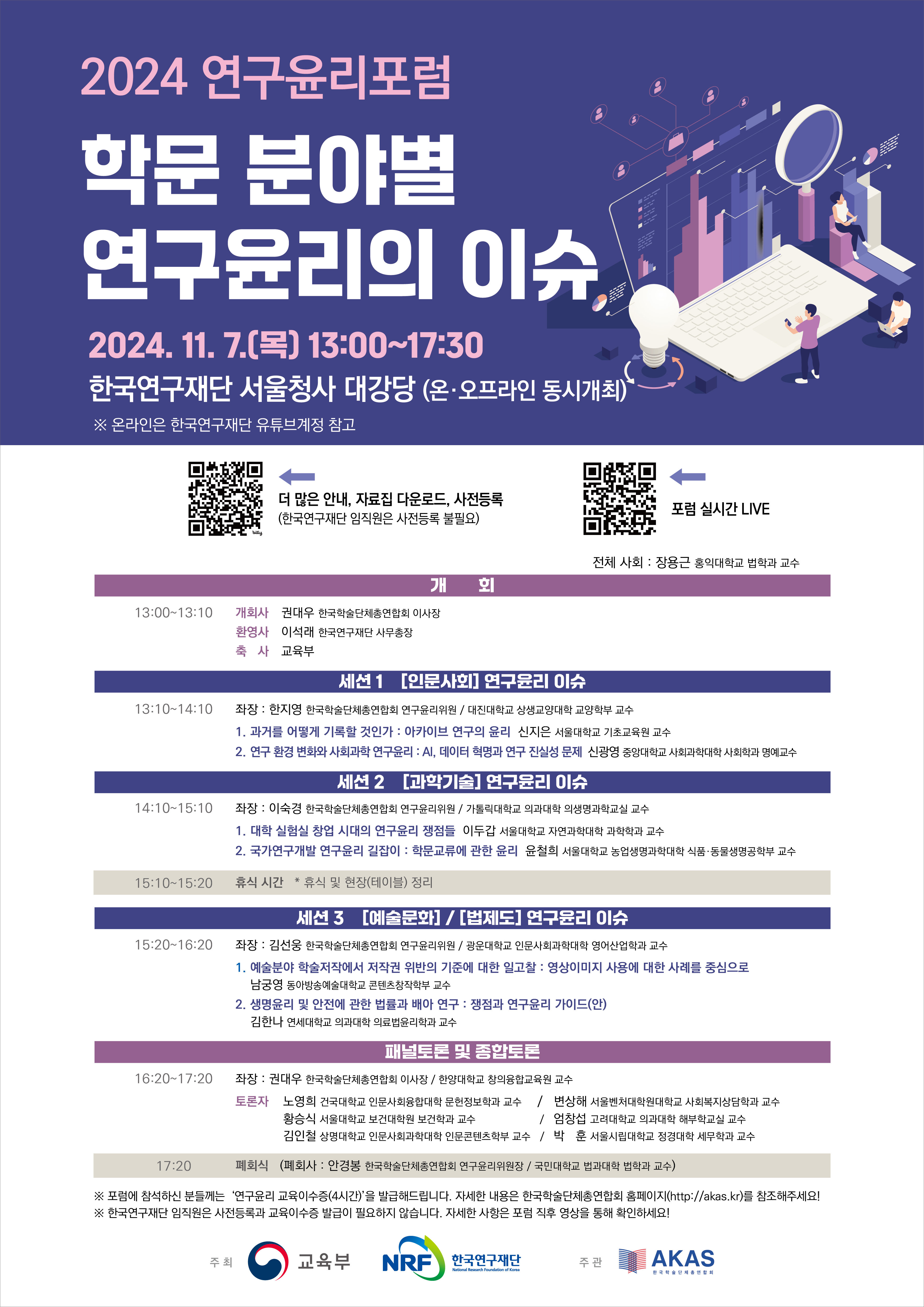 • 행사명: 2024년 연구윤리포럼 – 학문 분야별 연구윤리의 이슈