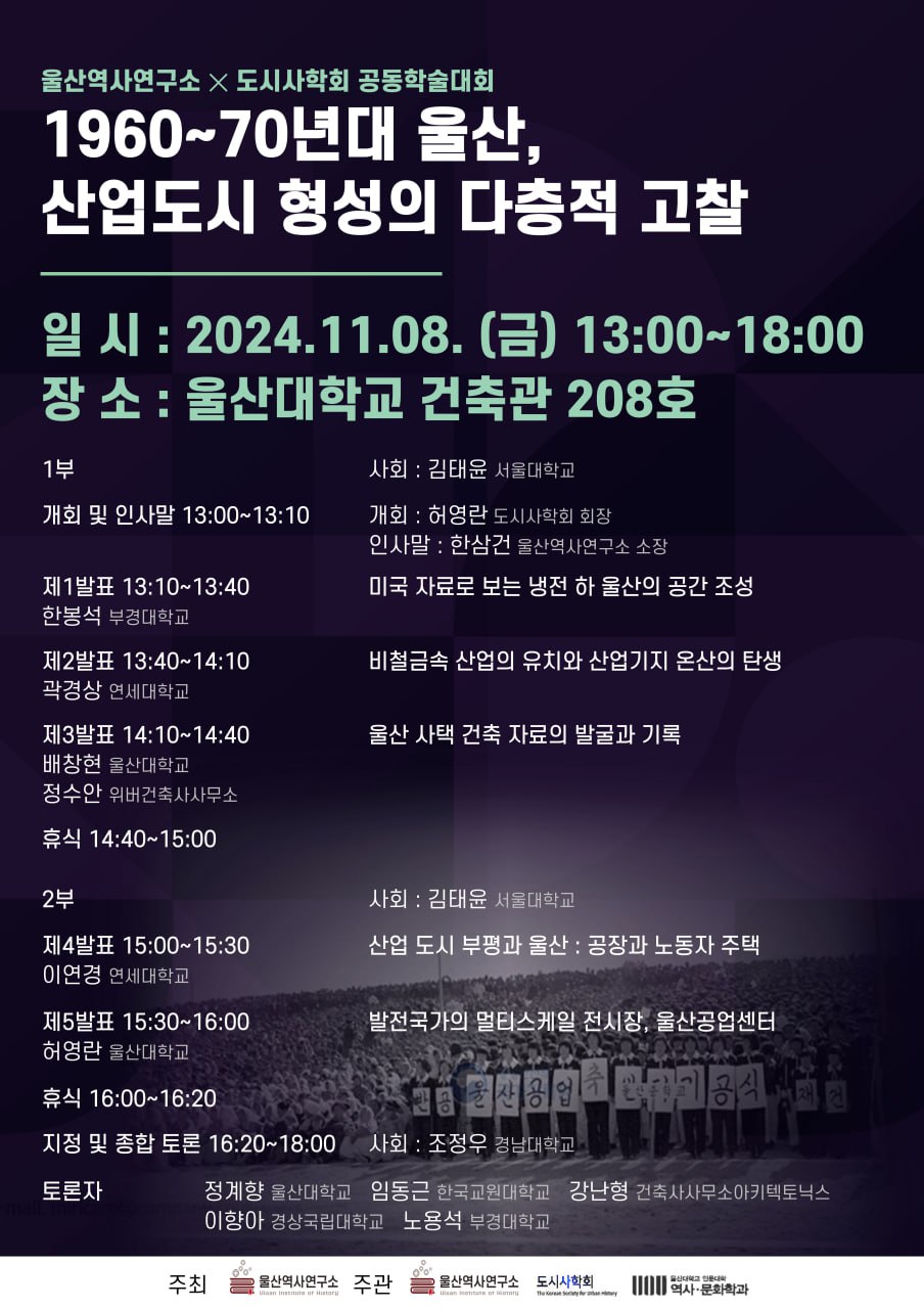 [울산역사연구소·도시사학회] 1960~70년대 울산, 산업도시 형성의 다층적 고찰