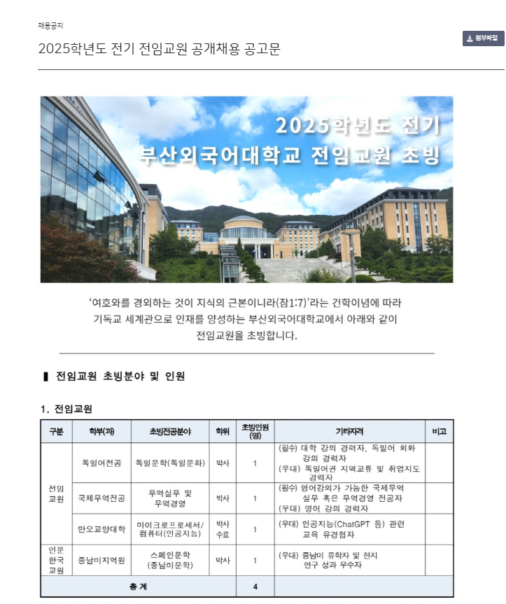 부산외대 2025-전기 전임교원 공개채용 공고문.PNG
