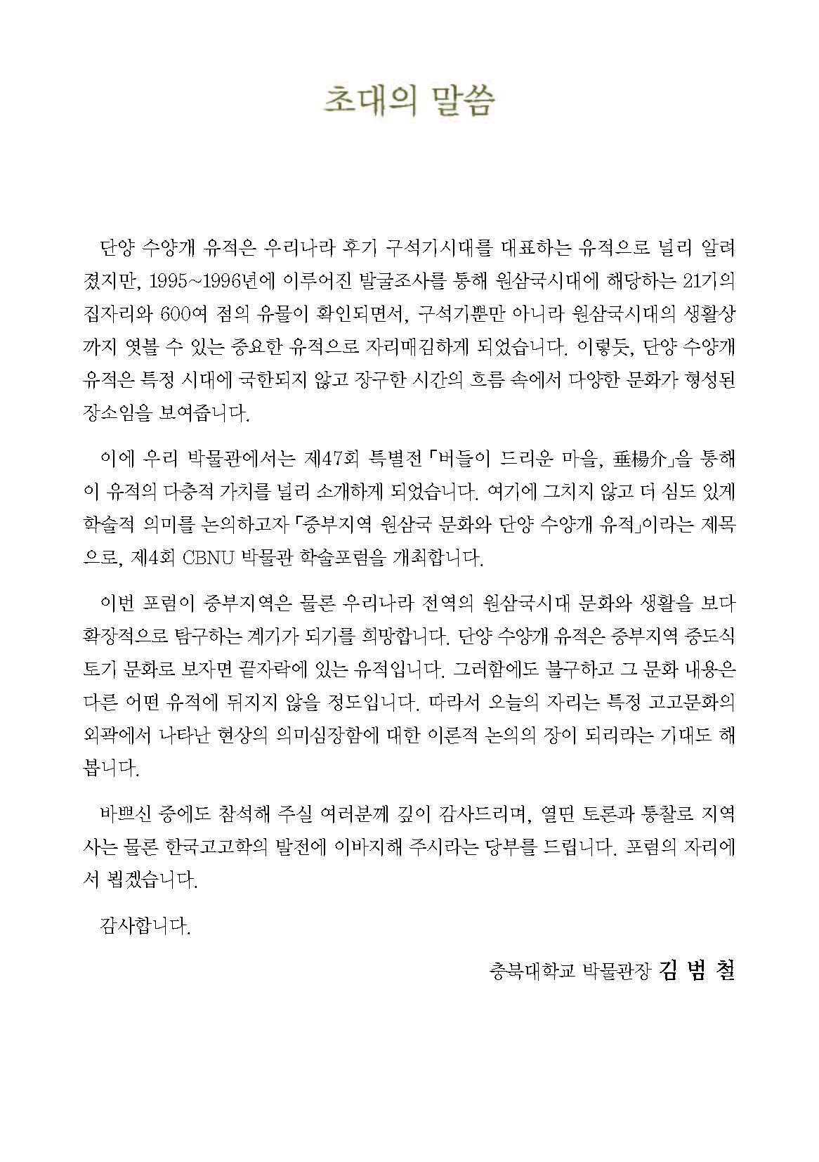 [충북대학교박물관] '중부지역 원삼국 문화와 단양 수양개 유적' 학술포럼