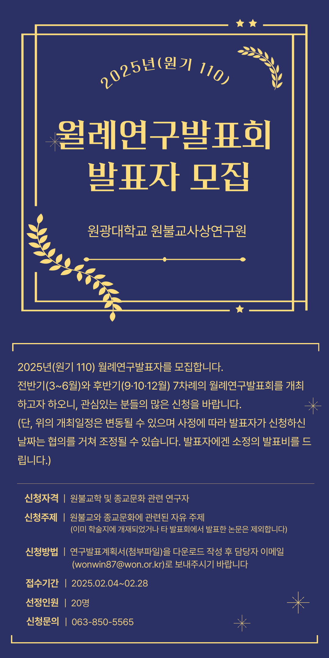 2025년(원기 110) 월례연구발표회 발표자 모집공고