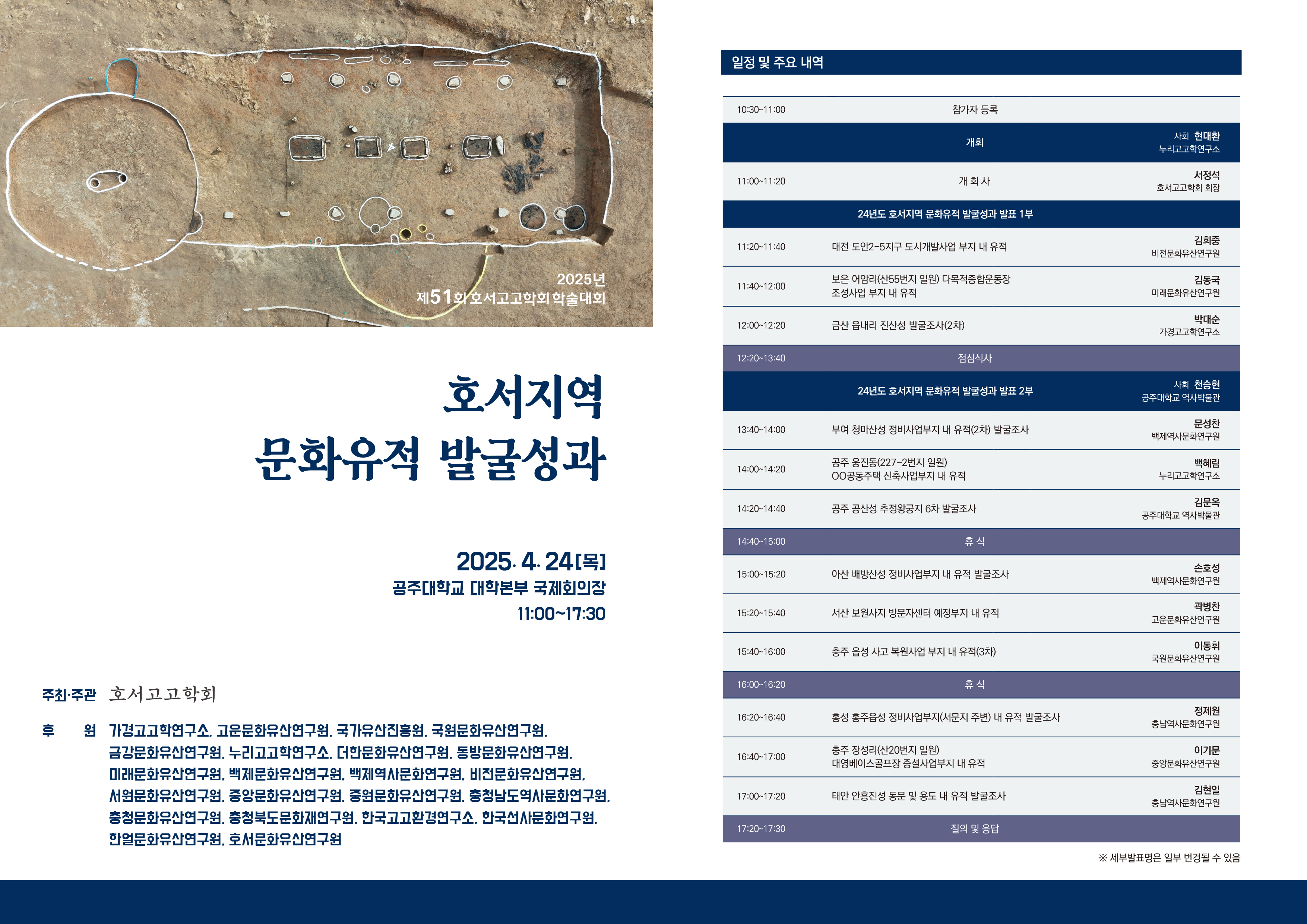 ◎ 학술대회명 : 호서고고학회 제51회 정기학술대회(호서지역 문화유적 발굴성과)