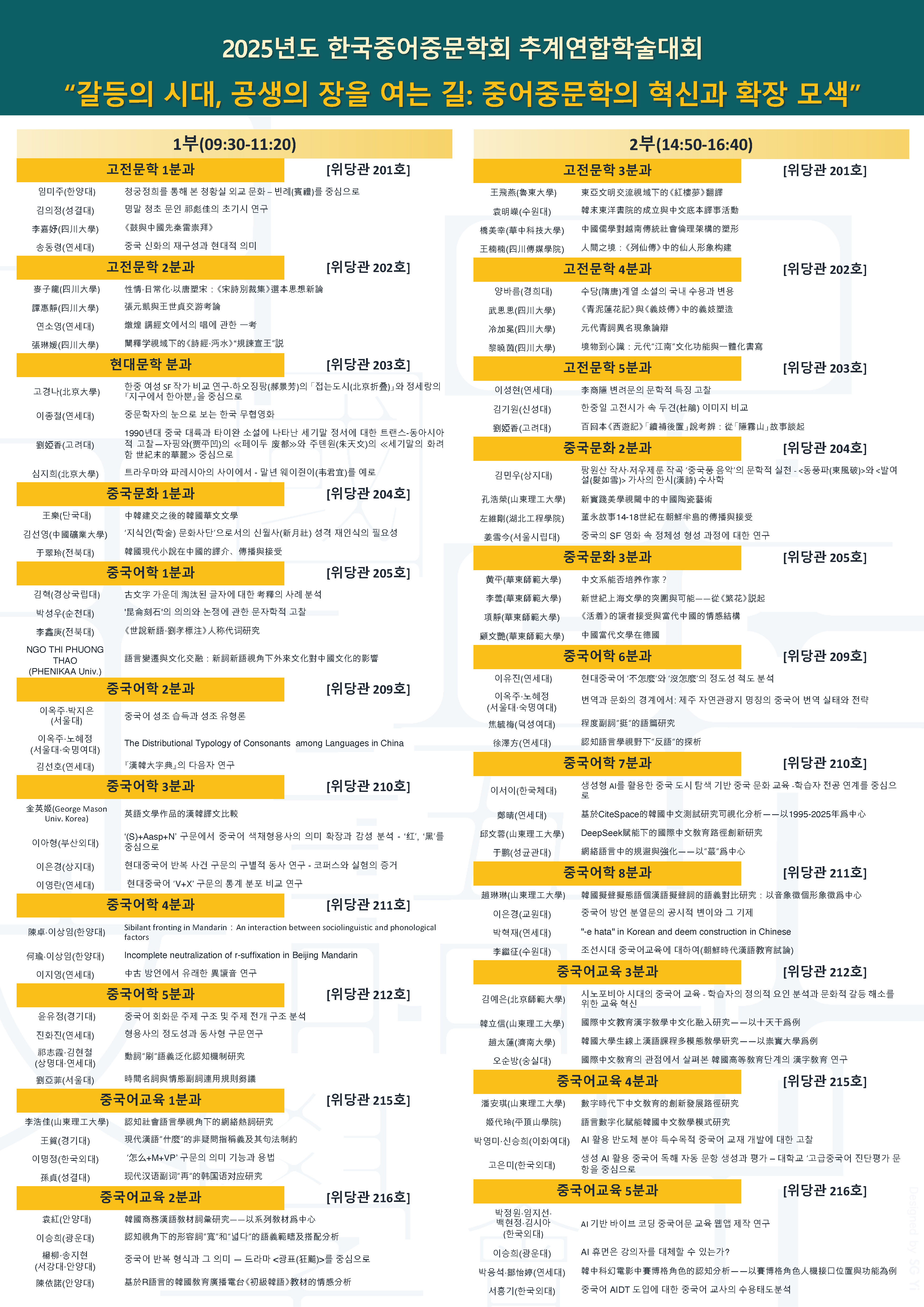 [한국중어중문학회] 2025년도 추계학술대회 개최 안내(3차) 한국중어중문학회 회원 여러분께,