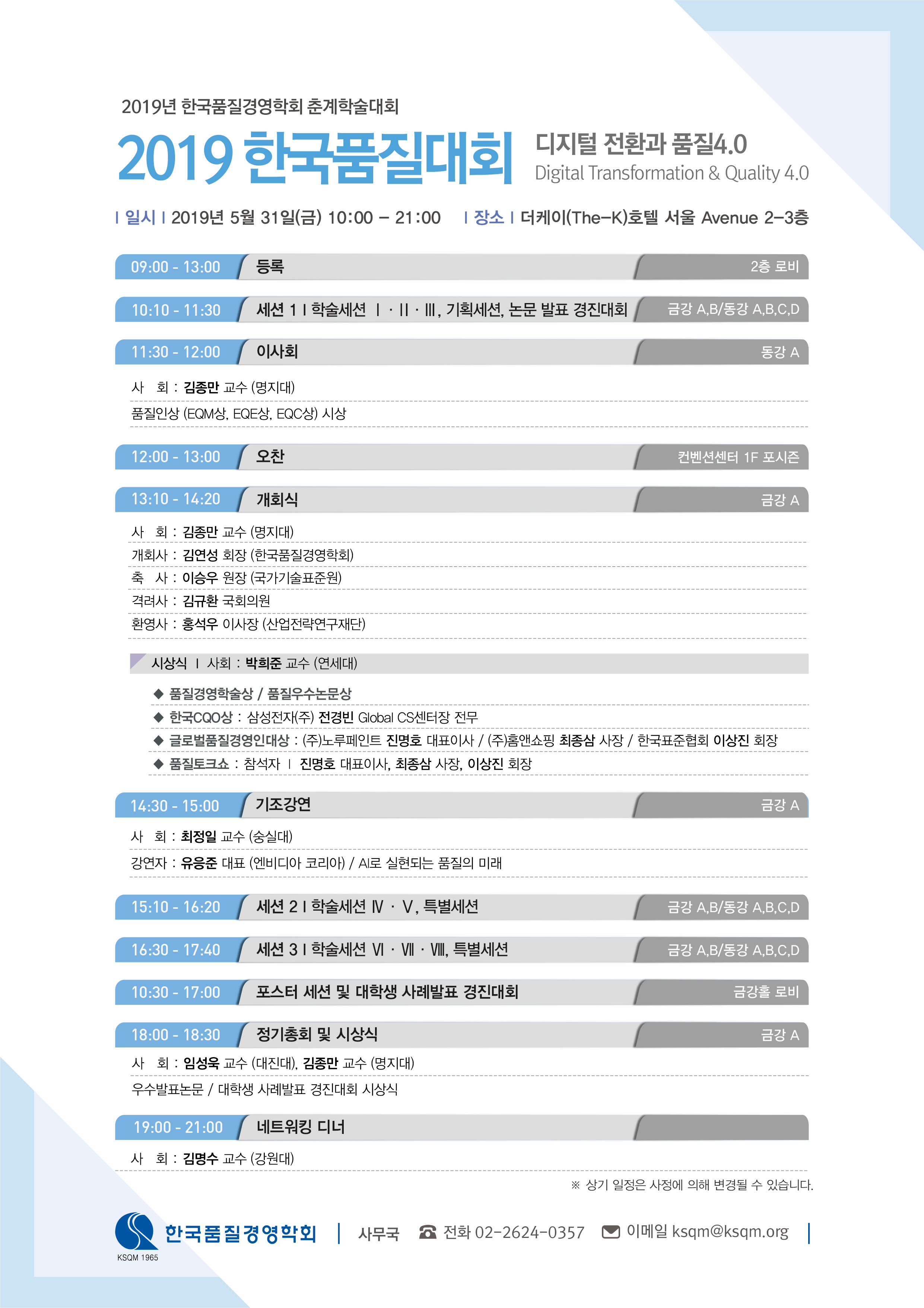 2019년 춘계 학술대회 주요일정 및 전체일정