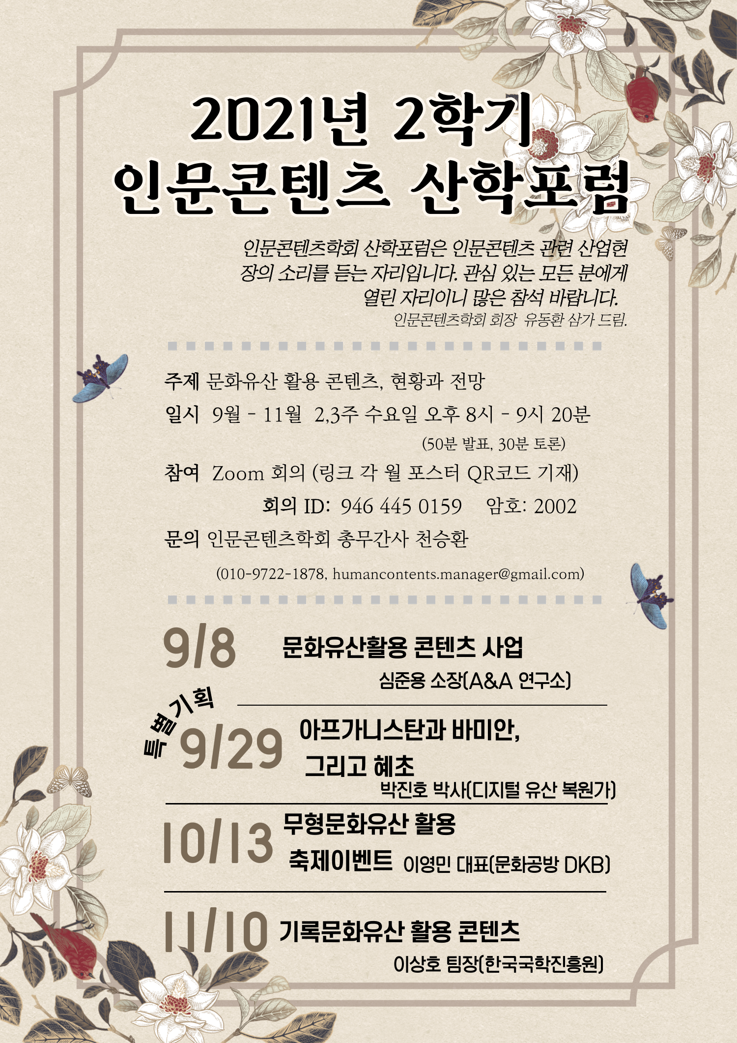 2021년 후반기 인문콘텐츠학회 산학포럼 개최 안내