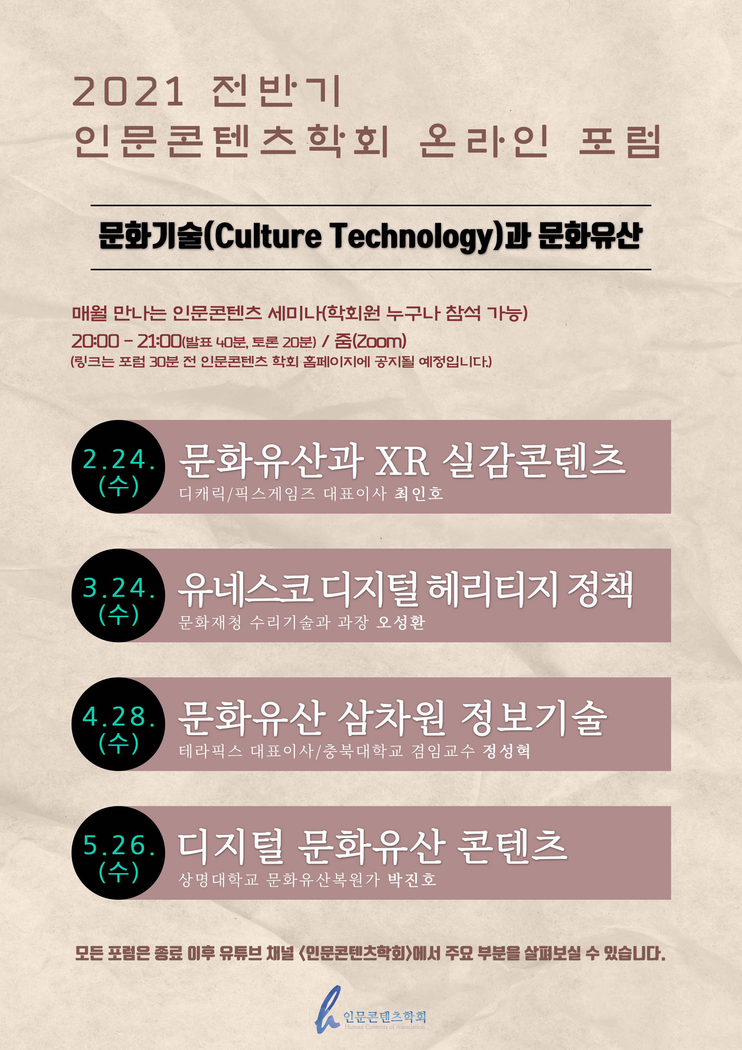 2021년 전반기 인문콘텐츠학회 온라인 포럼개최 안내