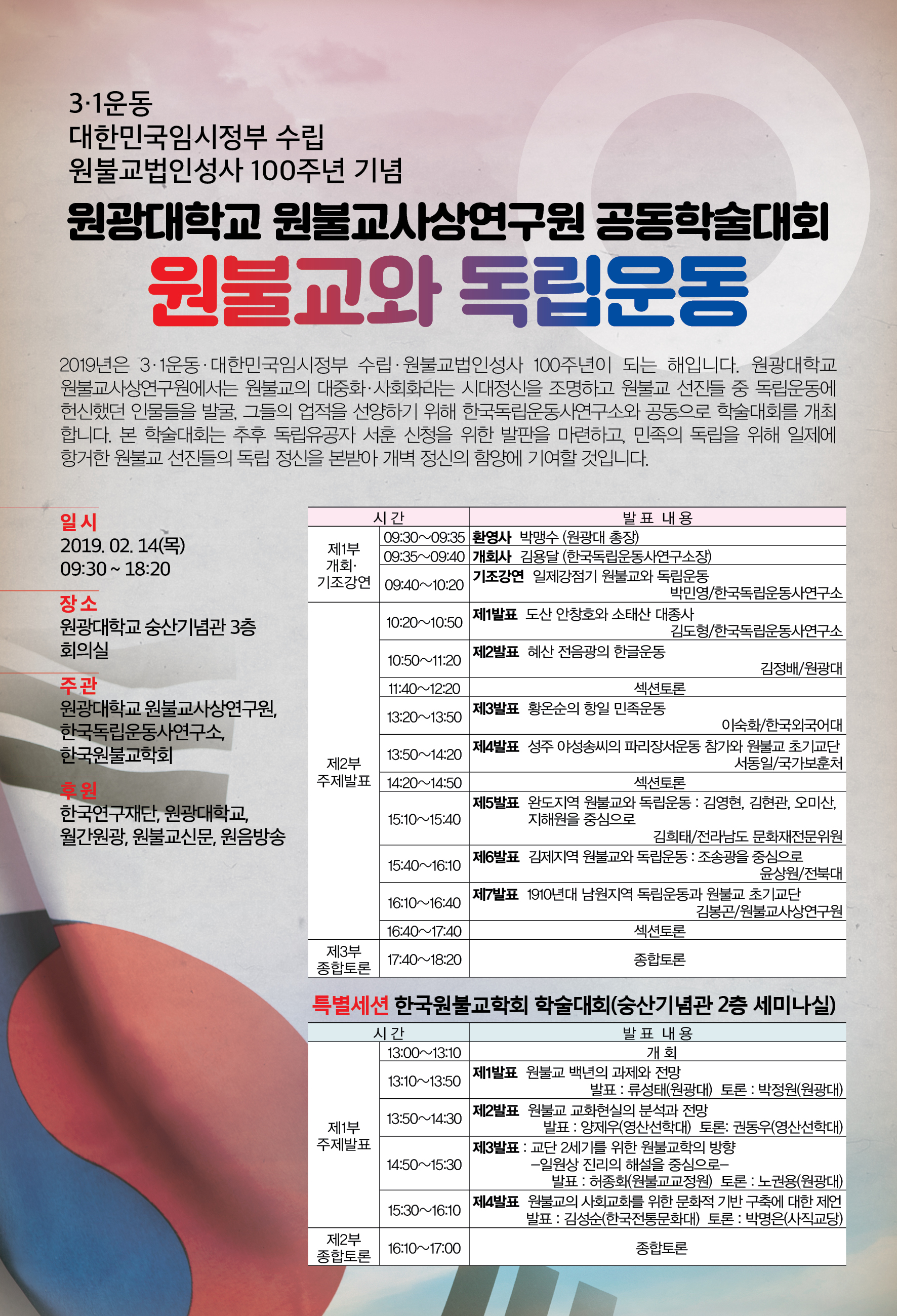 원불교와 독립운동 공동학술대회를 개최합니다.
