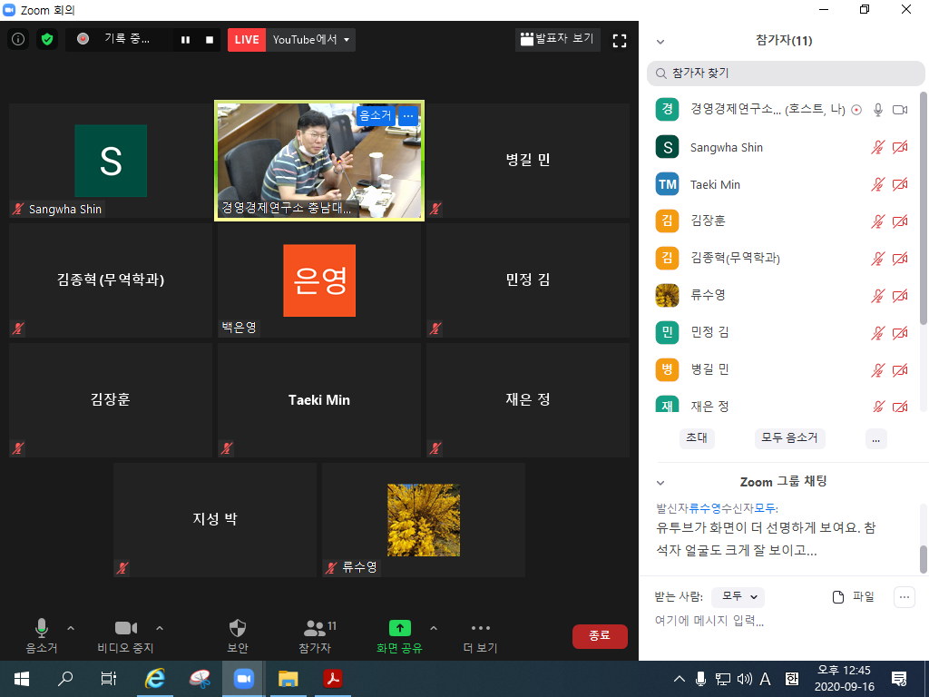 2020년 경영경제연구소 제2학기 제1차 수요세미나 (웨비나)