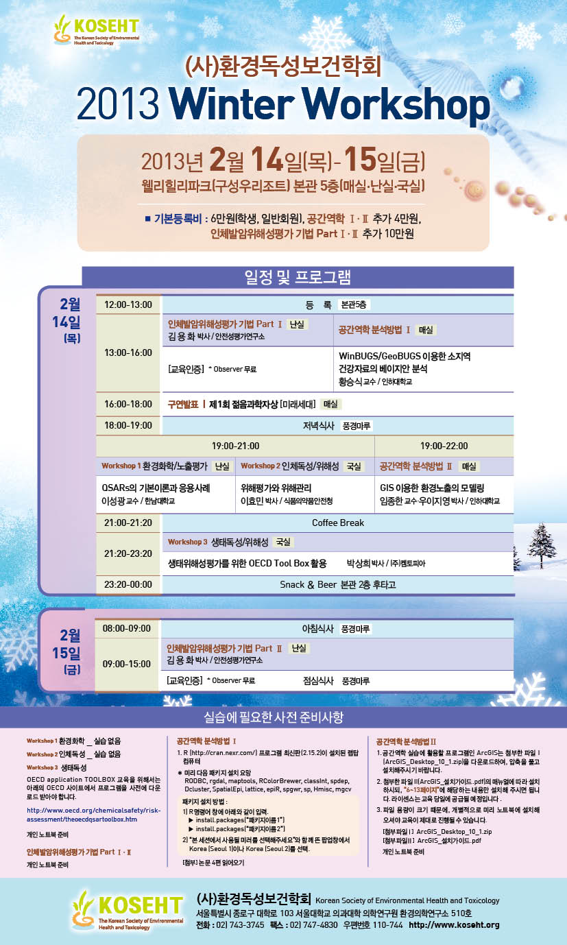 2013 동계워크숍 포스터(실습에 필요한 사전 준비사항) 안내