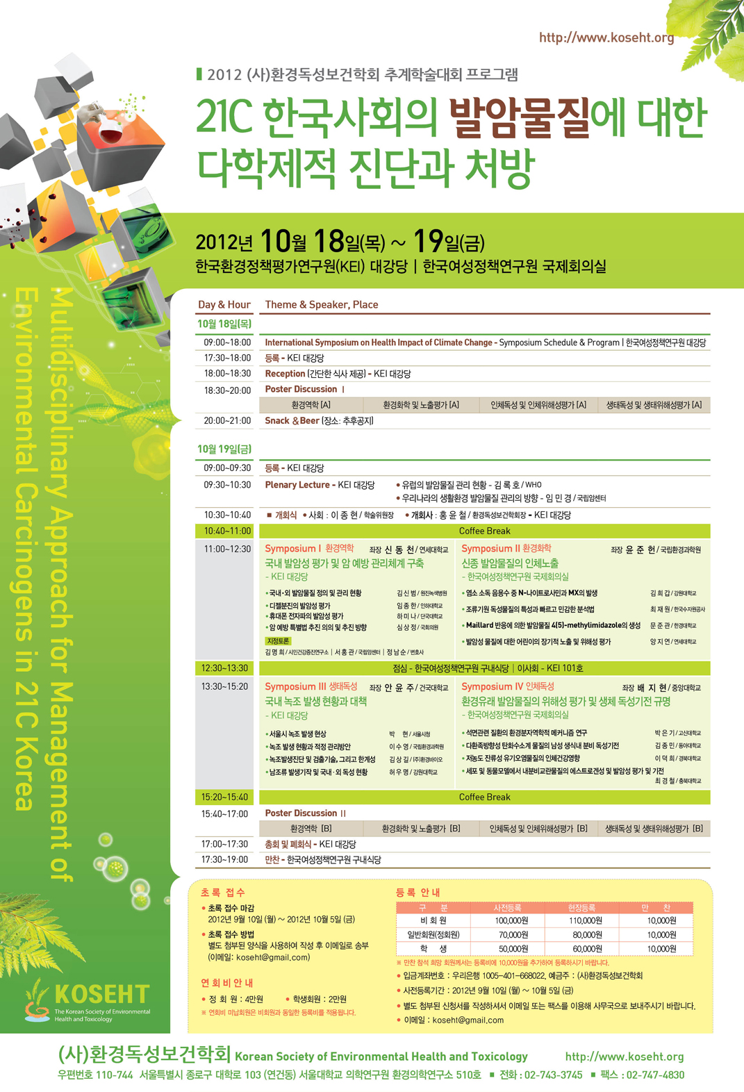 2012년 (사)환경독성보건학회 추계학술대회 ‘환경보건 학술주간’(10월 17일 ~ 19일)에 개최 예정